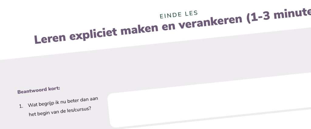 - Doen: Schrijf jullie gezamenlijke grootste inzicht in het midden van een flap.